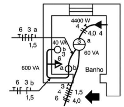 O circuito abaixo mostra parte de uma instalação elétrica residencial.