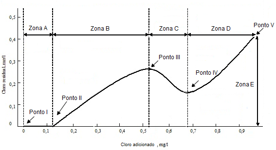 Com base no gráfico, assinale a opção que indica a zona onde ocorre a formação de cloraminas e de compostos organoclorados, quando o cloro adicionado reage com a amônia disponível.