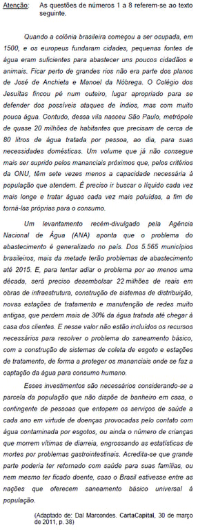 Esta questão foi aplicada no ano de 2011 pela banca FCC no concurso para SPPREV. A questão aborda conhecimentos da disciplina de Língua Portuguesa, especificamente sobre Análise Textual.