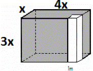 Considere uma cisterna em forma de paralelepípedo, com comprimento 4x, largura x e altura 3x, em metros. Essa cisterna é engastada verticalmente a um pilar que, no interior da cisterna, estabelece um prisma reto de base quadrangular com 1m de lado, conforme figura abaixo.