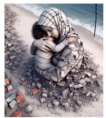 A imagem que ilustra o texto, traz na figura da mãe abraçando o filho e, ambos, bem grandes em relação ao local em que estão, fica uma representatividade figurativa: