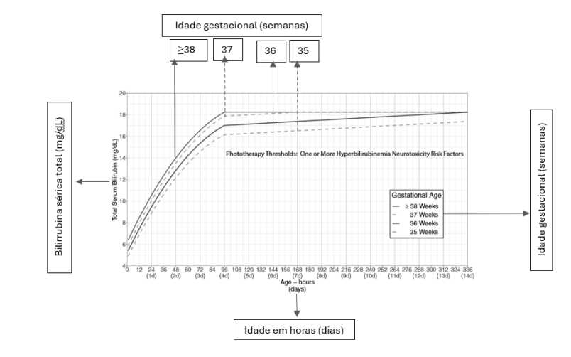 Gráfico 1 - Limites de fototerapia: um ou mais fatores de risco de neurotoxicidade de hiperbilirrubinemia