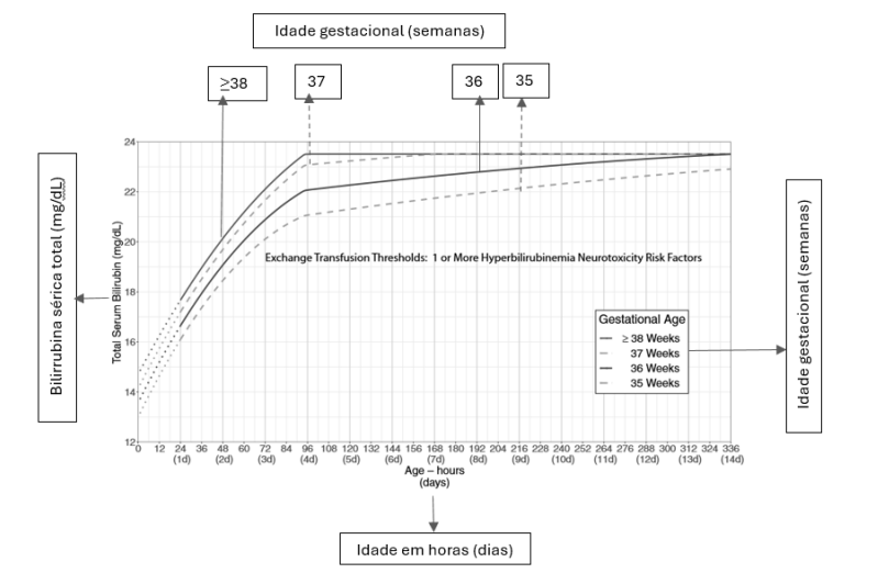 Gráfico 2 - Limites de exsanguineotransfusão: um ou mais fatores de risco de neurotoxicidade de hiperbilirrubinemia