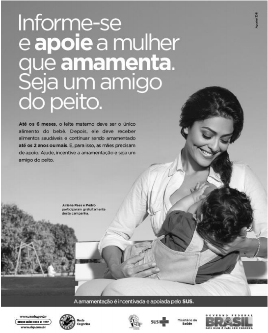 Sobre o trecho “informe-se e apoie a mulher que amamenta”, leia as afirmações.