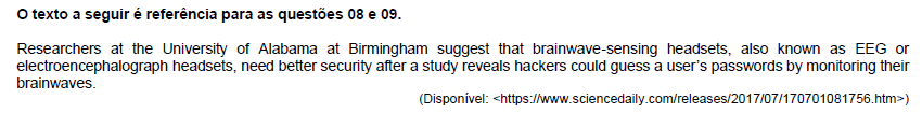 Esta questão foi aplicada no ano de 2017 pela banca NC-UFPR no concurso para ITAIPU BINACIONAL. A questão aborda conhecimentos da disciplina de Língua Inglesa, especificamente sobre Compreensão de Texto.