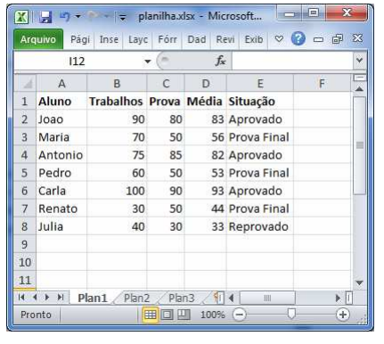 Para responder às questões de números 23 a 25, considere a planilha abaixo, elaborada no Microsoft Office Excel 2010 configuração padrão e idioma Português do Brasil.