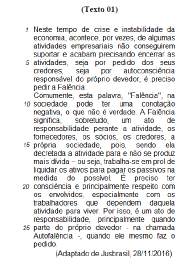 Esta questão foi aplicada no ano de 2017 pela banca ADVISE no concurso para CREA-SE. A questão aborda conhecimentos da disciplina de Língua Portuguesa, especificamente sobre Compreensão e Interpretação Textual, Análise Textual.