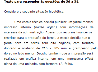 Esta questão foi aplicada no ano de 2016 pela banca FUNIVERSA no concurso para IF-AP. A questão aborda conhecimentos da disciplina de Design Gráfico e Comunicação Visual, especificamente sobre Produção Gráfica, Tecnologia de Impressão.
