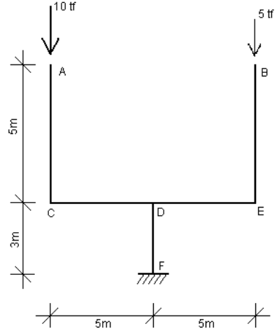 Quadro isostático solicitado pelo carregamento indicado.