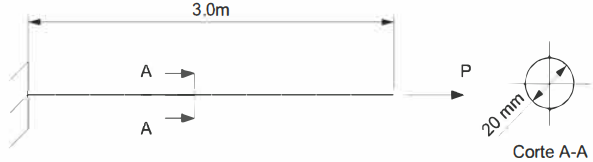 A figura a seguir apresenta uma barra de aço carbono, cujo módulo de elasticidade vale 200 GPa, submetida a uma carga axial P.