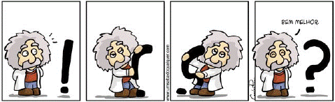 Se considerados os componentes contextuais da tira e a ordem como os elementos verbais e não verbais são sequenciados, eles apontam para uma direção interpretativa. Com base nessa afirmação e na leitura do texto, qual dos seguintes enunciados, atribuídos a cientistas clássicos, adéqua-se ao propósito comunicativo do produtor da tira?