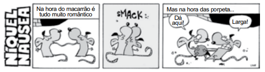 Em relação à conhecida história “A dama e o vagabundo”, o texto 1 tem a clara intenção de
