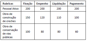 Com base nas informações das despesas públicas a seguir, responda às questões 67 e 68.