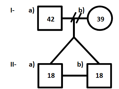 O genograma é um excelente instrumento para mapear e ampliar o conhecimento sobre as famílias e tem grande importância na atenção primária. Observe o genograma abaixo e responda às questões 35, 36 e 37: