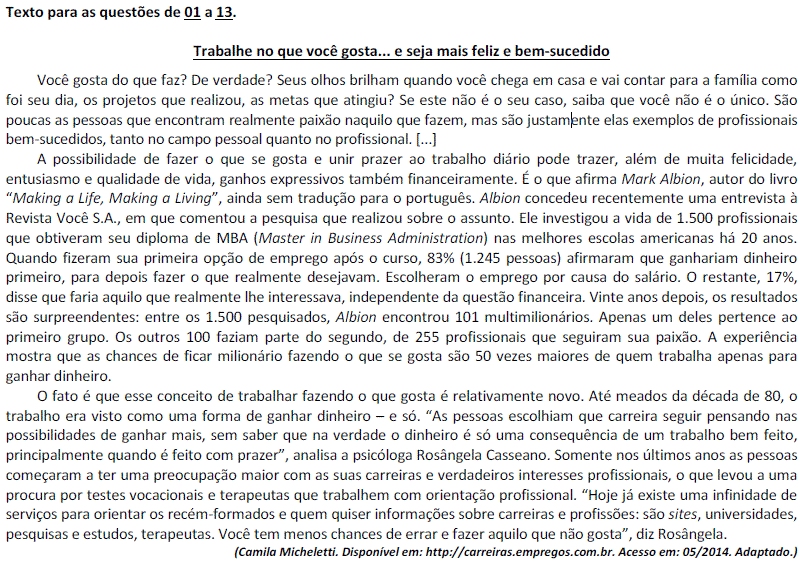 Esta questão foi aplicada no ano de 2014 pela banca IDECAN no concurso para Colégio Pedro II. A questão aborda conhecimentos da disciplina de Língua Portuguesa, especificamente sobre Morfossintaxe da Palavra 'QUE'.