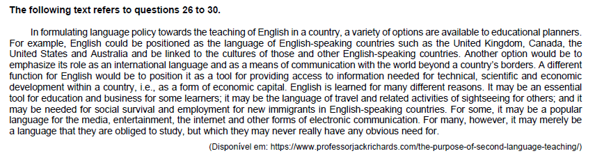 Mais questões de Língua InglesaQuestões sobre Compreensão de TextoQuestões do NC-UFPR