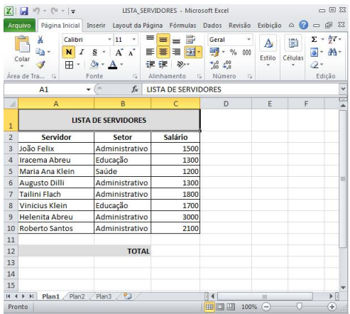 Roberto trabalha no Departamento de Pessoal do Município de Campo Bom e está trabalhando em uma planilha do Excel 2010 onde constam alguns dados dos servidores. Para responder às questões 29 e 30, considere abaixo a Figura 1 que foi elaborada no Excel 2010.