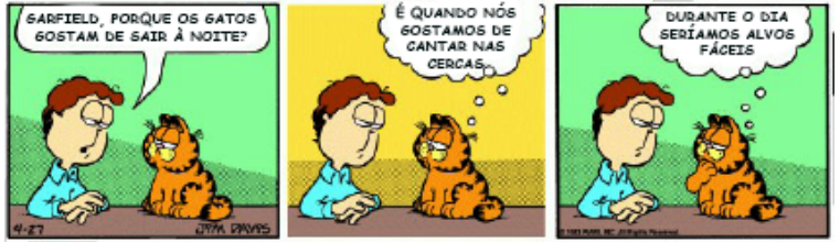 Leia com atenção a tira de “Garfield”, criada pelo cartunista Jim Davis, para responder às questões 1 e 2 a seguir.