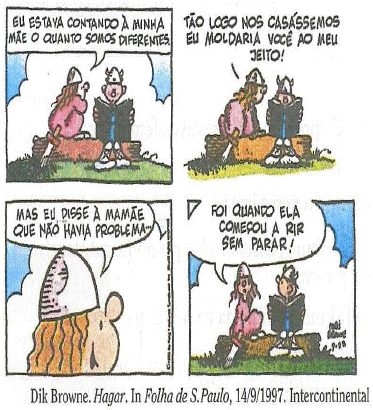 Sobre os recursos linguísticos que compõe a tirinha, é correto afirmar que :
